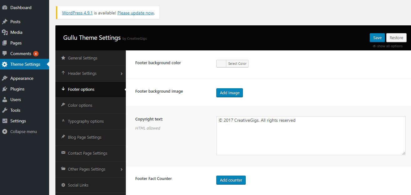 Footer Settings Estimated reading: 1 minute 507 views You can configure the footer area of the theme from the settings option. You will find all relevant section settings to the “Footer” option. Navigate to Theme Options > Footer Settings to go to this settings section. We provided all necessary instructions and descriptions with all the options.